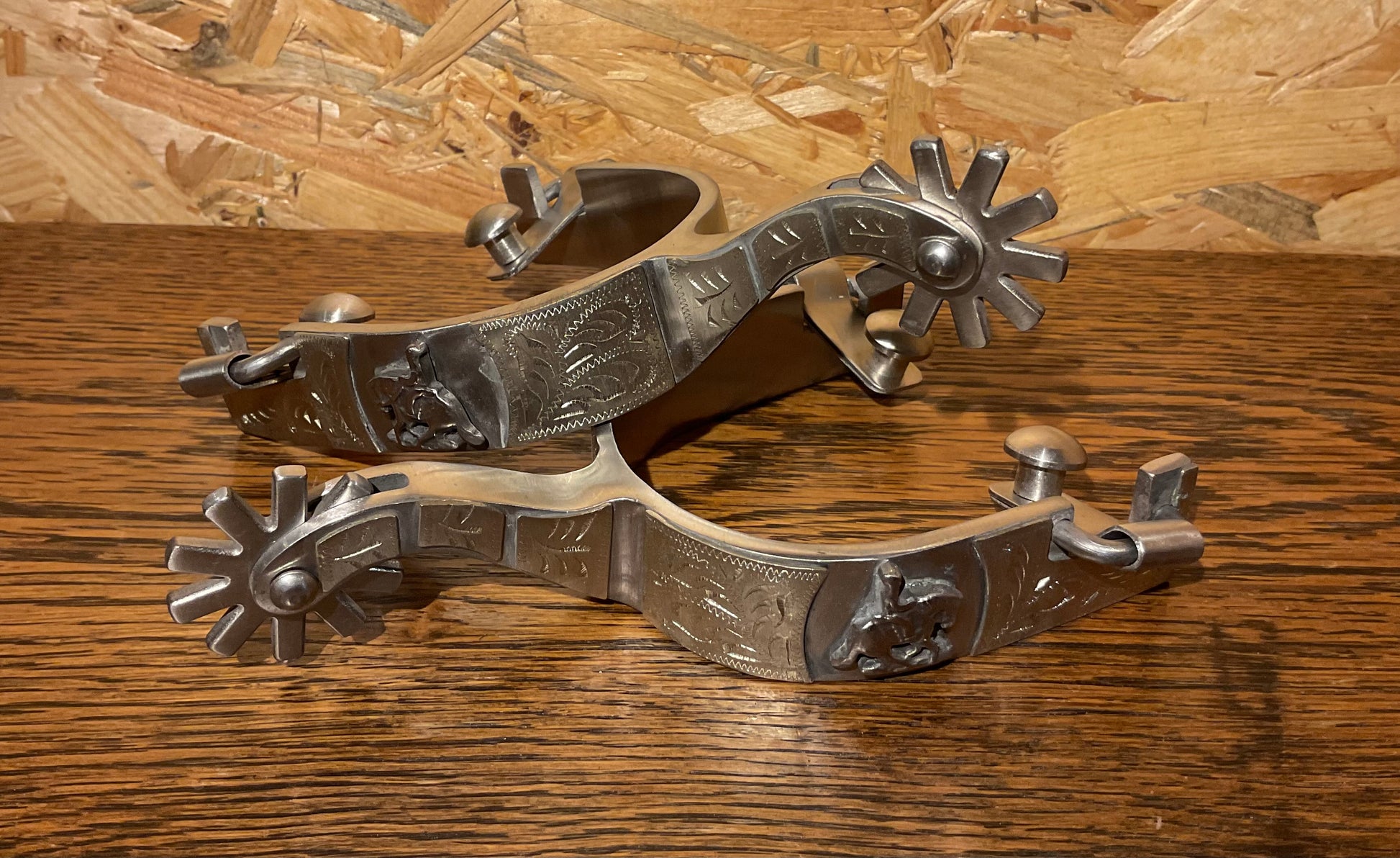 Sehr schöner Westernsporen mit Reiningmotiv und Blumendekor.