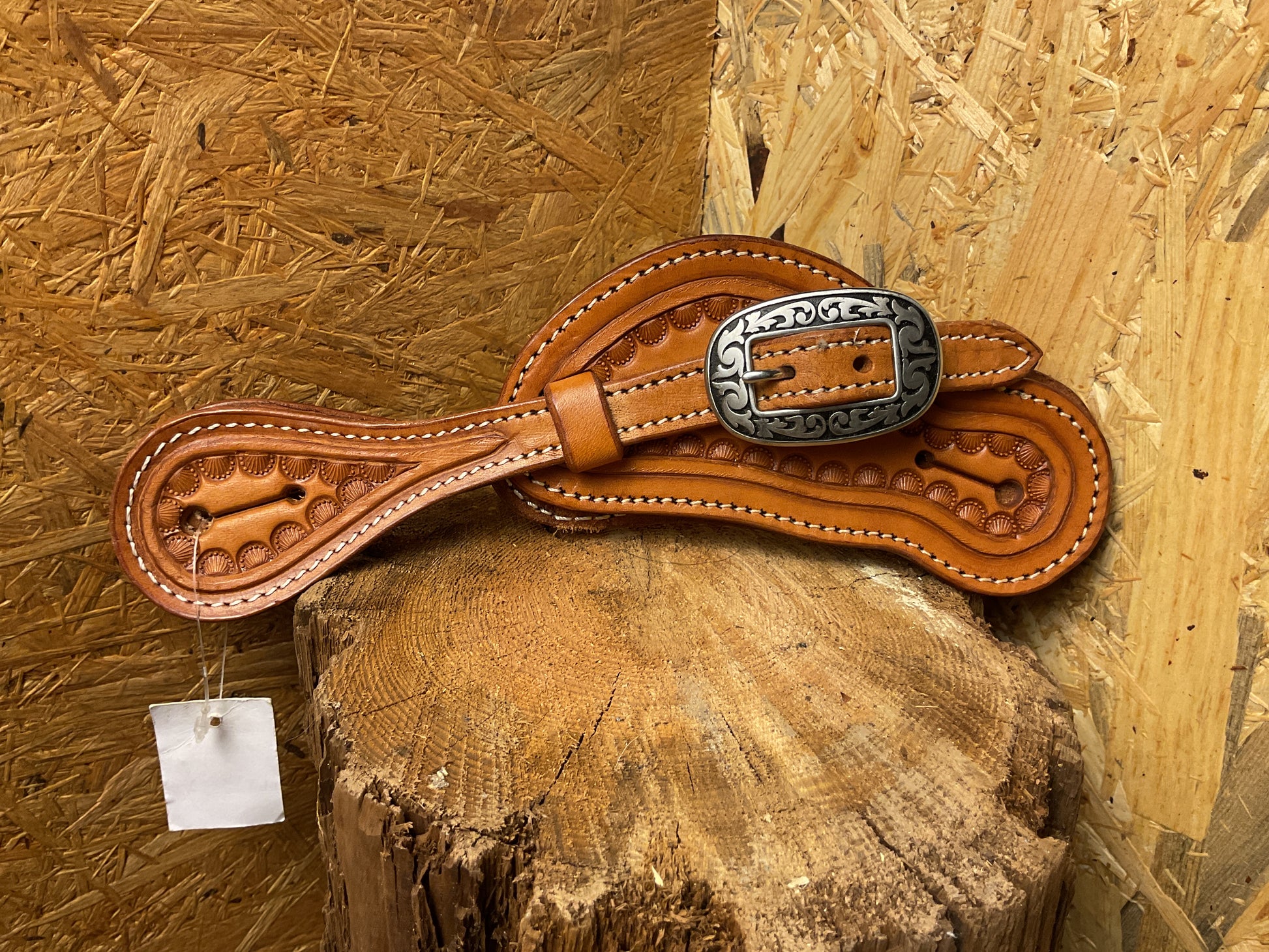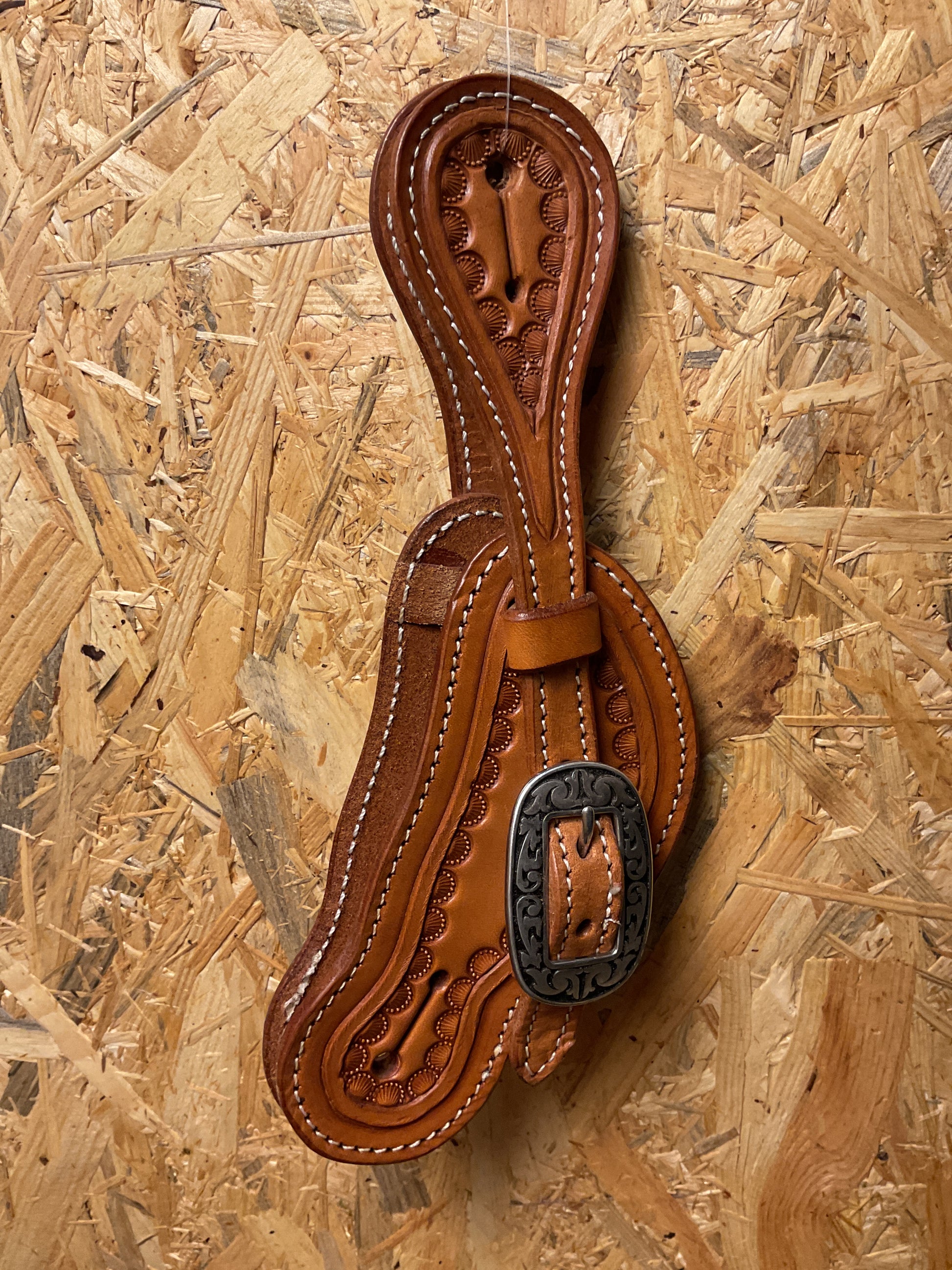 Tolle Sporenriemen in hellbraun mit dezentem Bordertooling und Schalle im Jeremiah Watt Design.