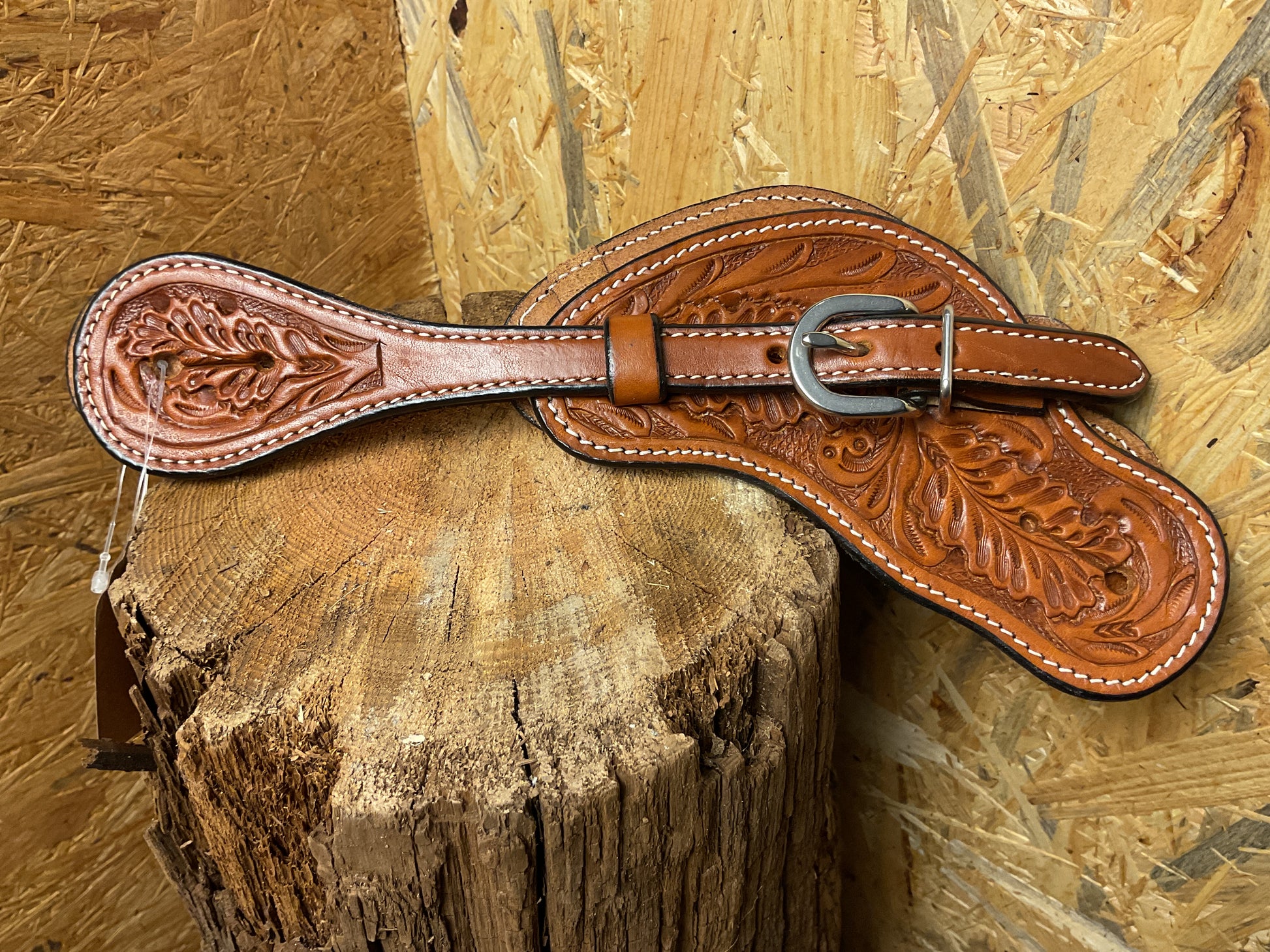 Tolle Herren Sporenriemen mit Entz- Punzierung in mittelbraun.