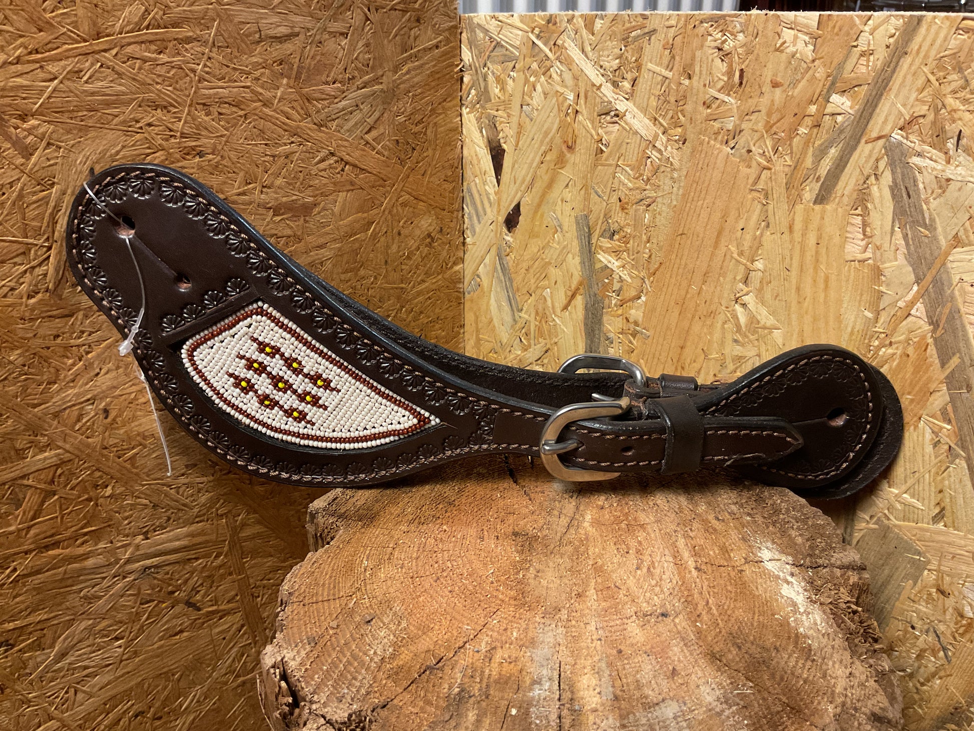 Wunderschöne Sporenriemen in dunkelbraun mit aufwendig eingearbeitetem Perlenmuster und dezentem Bordertooling.
