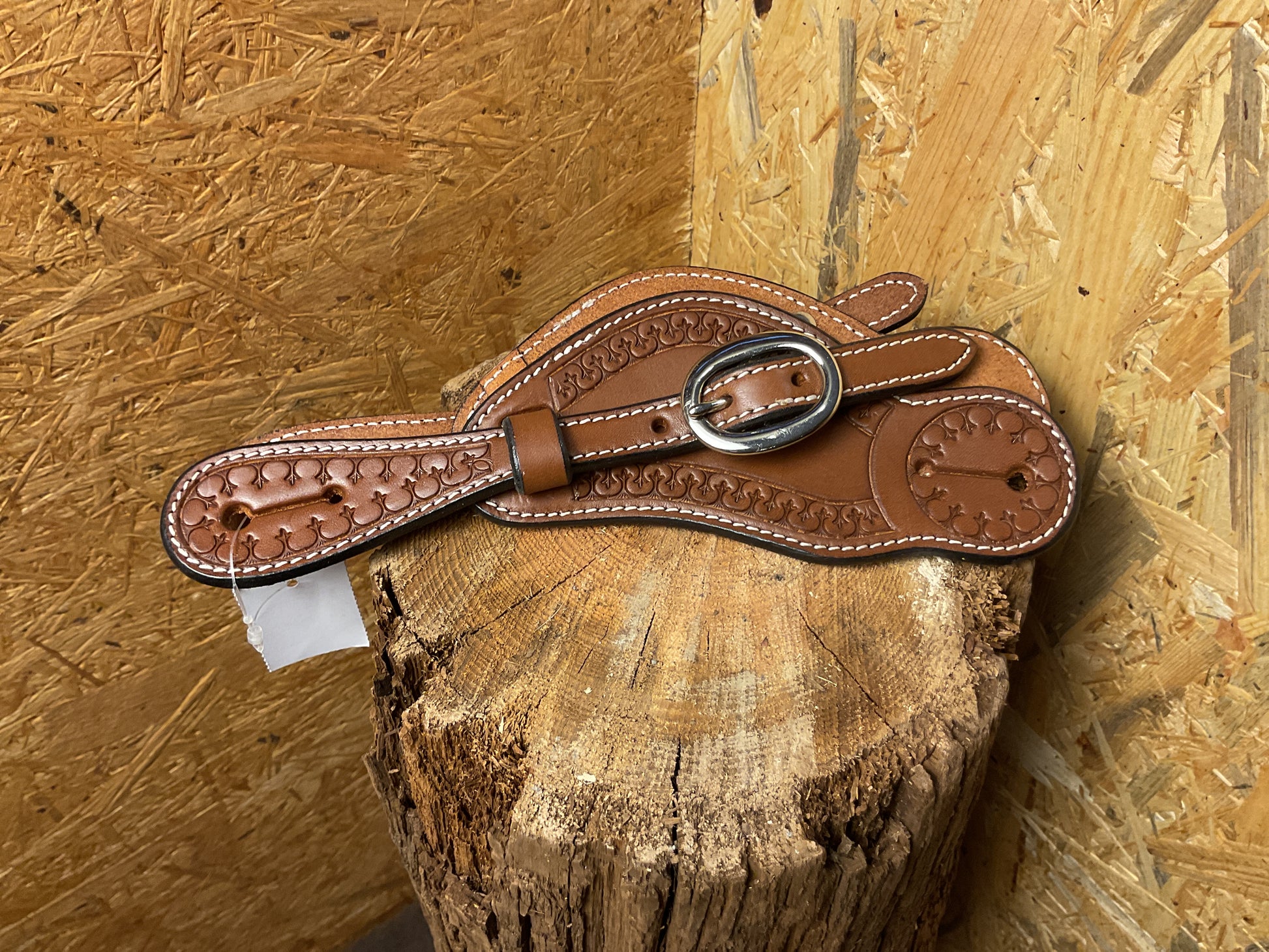 Sporenriemen in mittelbraun mit toller Running Snake Punzierung.